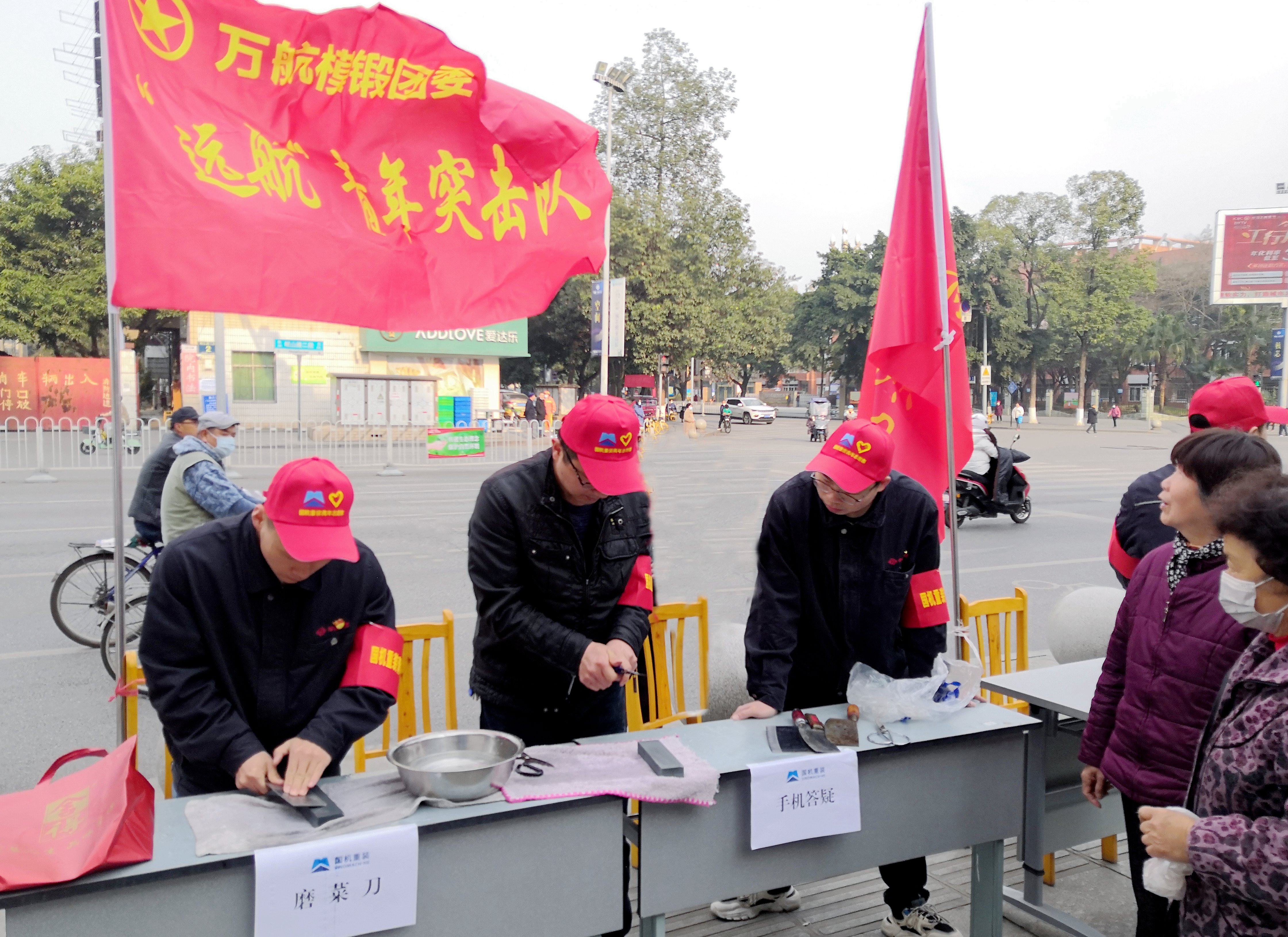 萬(wàn)航模鍛青年志愿者深入二重社區(qū)開(kāi)展“傳承雷鋒精神、爭(zhēng)做時(shí)代新人”主題志愿服務(wù)活動(dòng)。青年志愿者們把學(xué)雷鋒活動(dòng)融入日常,為廠區(qū)周邊居民提供磨菜刀、剪刀、手機(jī)使用咨詢等服務(wù)。服務(wù)現(xiàn)場(chǎng),醒目的志愿者服務(wù)帽、忙碌的身影、熱情的笑臉成為一道生動(dòng)的“鋒”景。