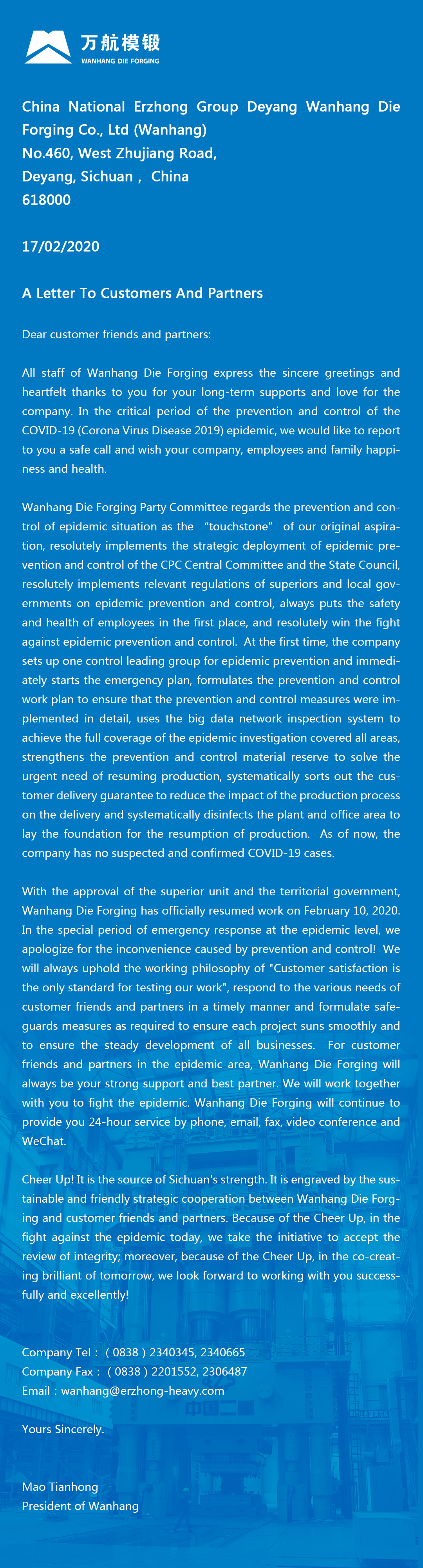 英文全稱:CHINA NATIONAL ERZHONG GROUP DEYANG WANHANG DIE FORGING CO.,LTD.